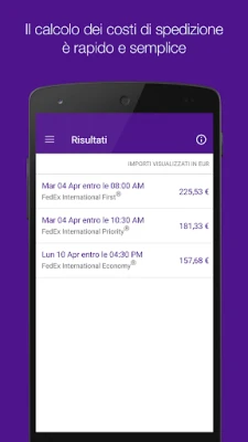 Con l'app FedEx Mobile, gestisci le tue spedizioni nazionali e internazionali con la massima facilità. Crea Lettere di Vettura, monitora i colli in tempo reale, calcola tariffe e trova i punti di ritiro/consegna. Iscriviti a FedEx Delivery Manager® per personalizzare quando e dove ricevere i tuoi pacchi. La tua logistica, sempre a portata di mano.