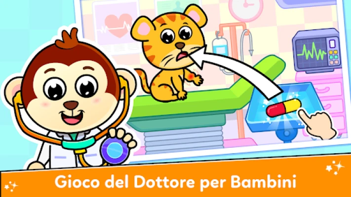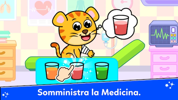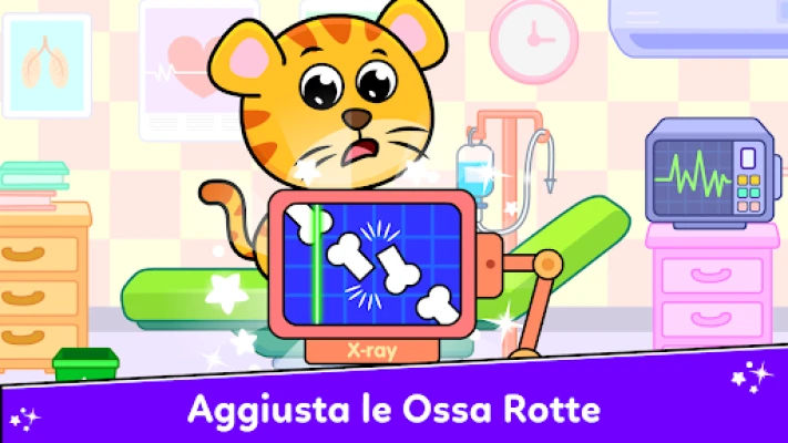 Esplora il divertente mondo di Dottore all'Ospedale per Bambini. Diventa un medico, autista di ambulanza o dentista e cura simpatici animali come mucche, tigri e panda. Un'avventura medica emozionante e istruttiva per i più piccoli, dove l'assistenza è divertimento.