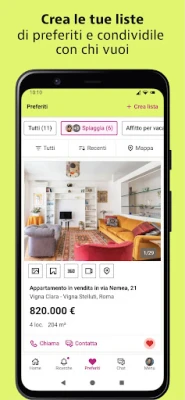 Per chi è alla ricerca, l'esperienza utente è stata pensata per la massima comodità. Potrai delimitare la tua area di interesse direttamente sulla mappa interattiva, visualizzando istantaneamente tutte le proprietà disponibili e confrontandone i prezzi con un solo sguardo. Scopri con facilità gli immobili in vendita o in affitto nelle tue immediate vicinanze, oppure salva i tuoi annunci preferiti in liste personalizzate. Grazie alla funzionalità di condivisione collaborativa, potrai discuterne con amici e familiari, aggiungere note o eliminare ciò che non ti convince più, trasformando la ricerca in un'attività condivisa e organizzata.