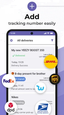 Monitora facilmente le tue consegne e spedizioni internazionali direttamente dal tuo telefono. Questa app rende il tracciamento più semplice che mai, permettendoti di aggiungere un widget alla schermata di blocco per seguire i tuoi pacchi con un'occhiata.