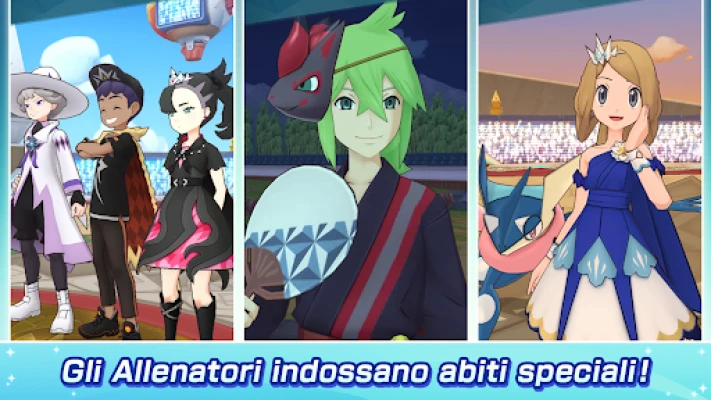 Raduna un cast stellare di personaggi iconici, dai Campioni invincibili ai saggi membri dei Superquattro, dai carismatici Capipalestra fino a visitatori misteriosi da epoche passate, inclusi Allenatori da Paldea, Hisui e molte altre regioni. Affronta entusiasmanti battaglie tre contro tre, dove non è solo la forza bruta a contare, ma la sinergia e il legame profondo tra Allenatore e Pokémon a determinare la vittoria. Non perdere l'occasione di vedere i tuoi eroi sfoggiare abiti speciali ed esclusivi di Pokémon Masters EX, ognuno con la propria storia affascinante da scoprire.