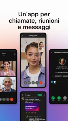 Integrare Webex significa avere il tuo ufficio sempre con te. Accedi alle tue funzioni di chiamata preferite direttamente dall'applicazione, trasformando il tuo dispositivo in un potente strumento di telefonia aziendale, disponibile sempre e ovunque. Avvia conversazioni immediate, consulta la casella vocale visiva e gestisci le tue chiamate professionali con una flessibilità senza precedenti. Cisco è orgogliosa di offrire una soluzione che unisce tutte le tue esigenze di comunicazione in un'unica esperienza coerente e performante, per un'efficienza senza compromessi.